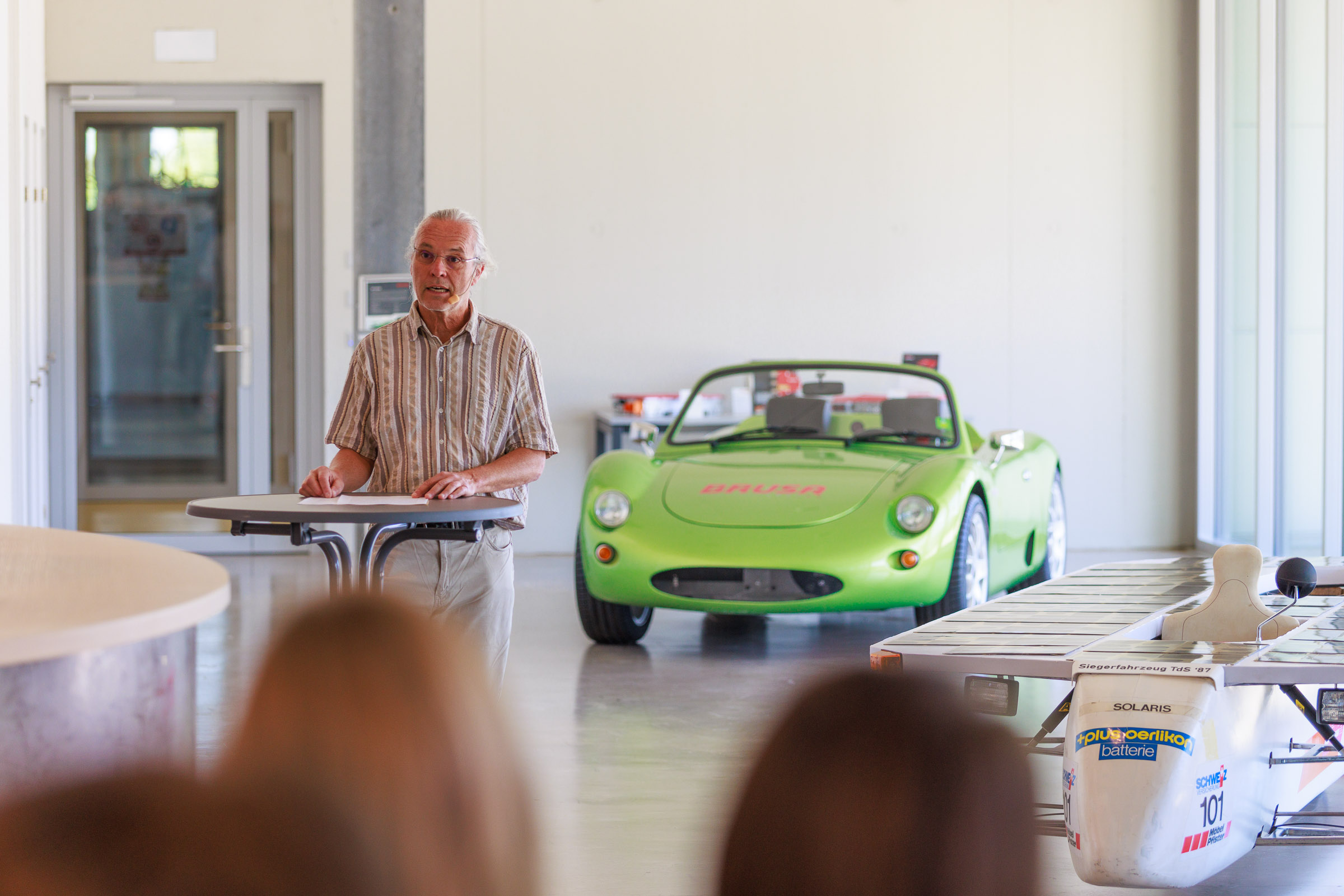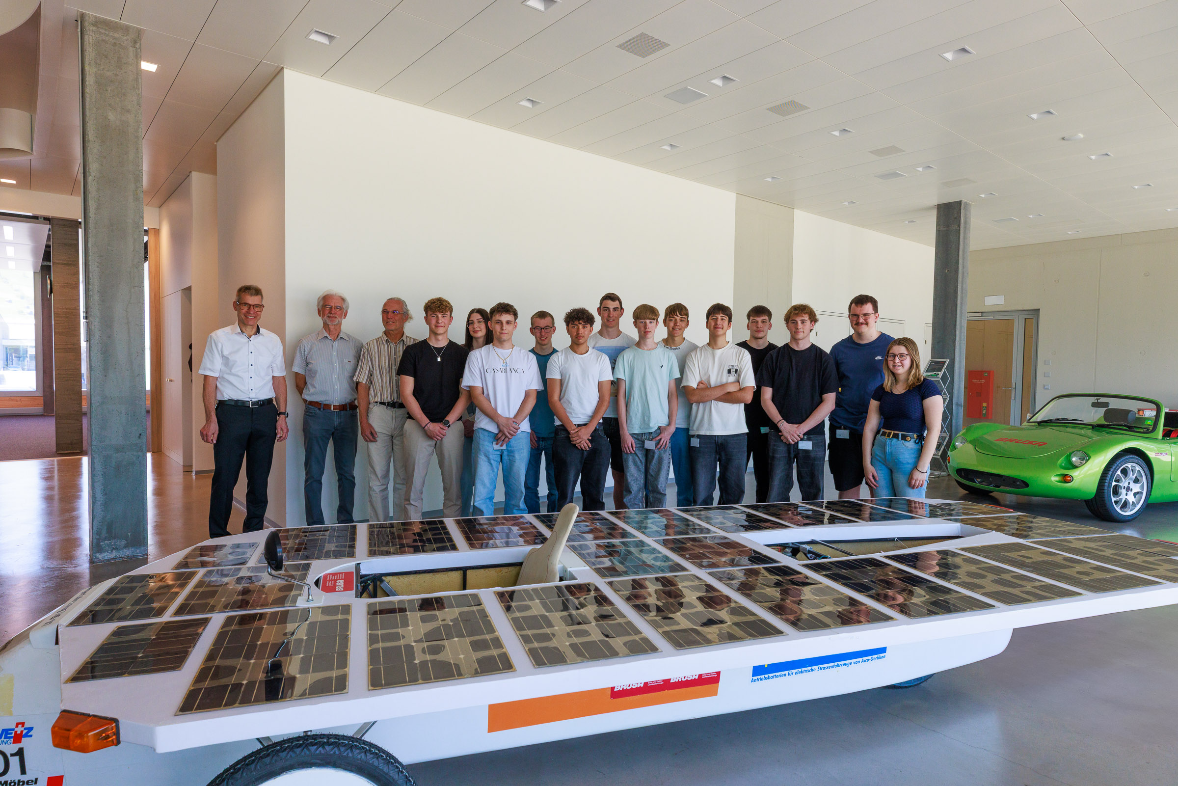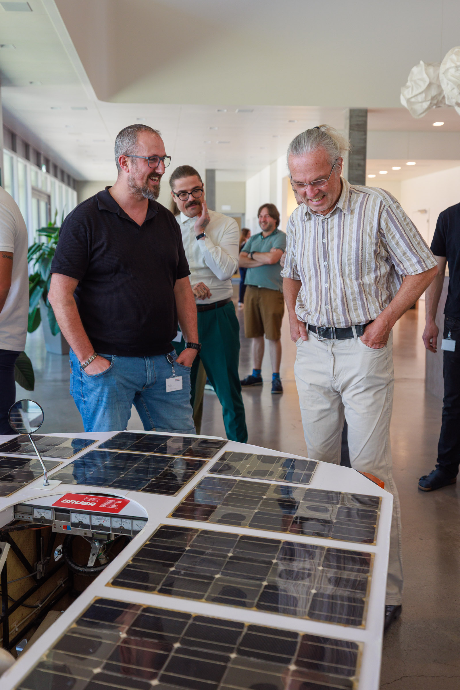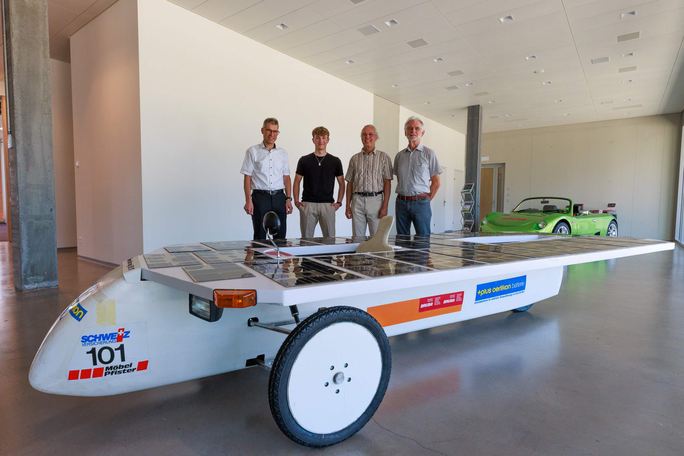 Im Rahmen der Jubiläumsfeier am Hauptsitz in Buchs sprachen Gründer Josef Brusa, Axel Krause, Holger Fink und Renato Steiger. Ausgestellt waren ein BRUSA Spider sowie ein restauriertes Solarfahrzeug von Axel Krause aus der Tour de Sol.