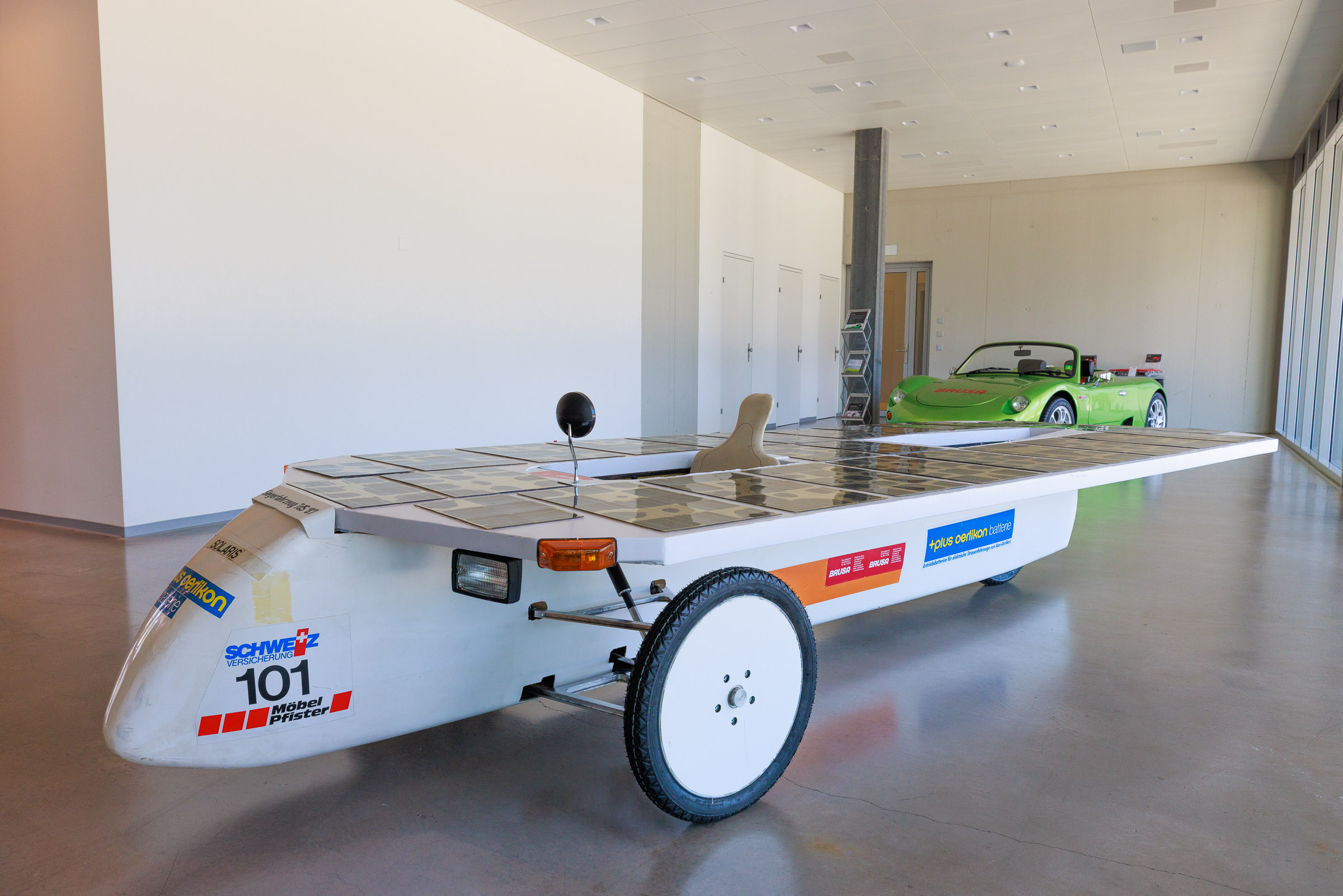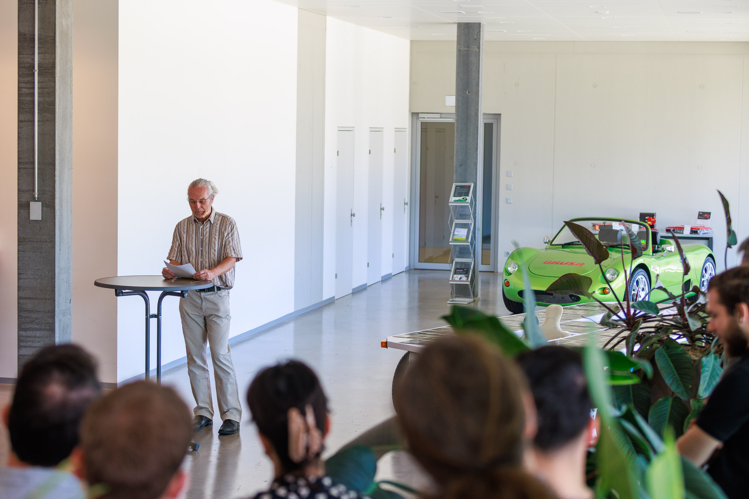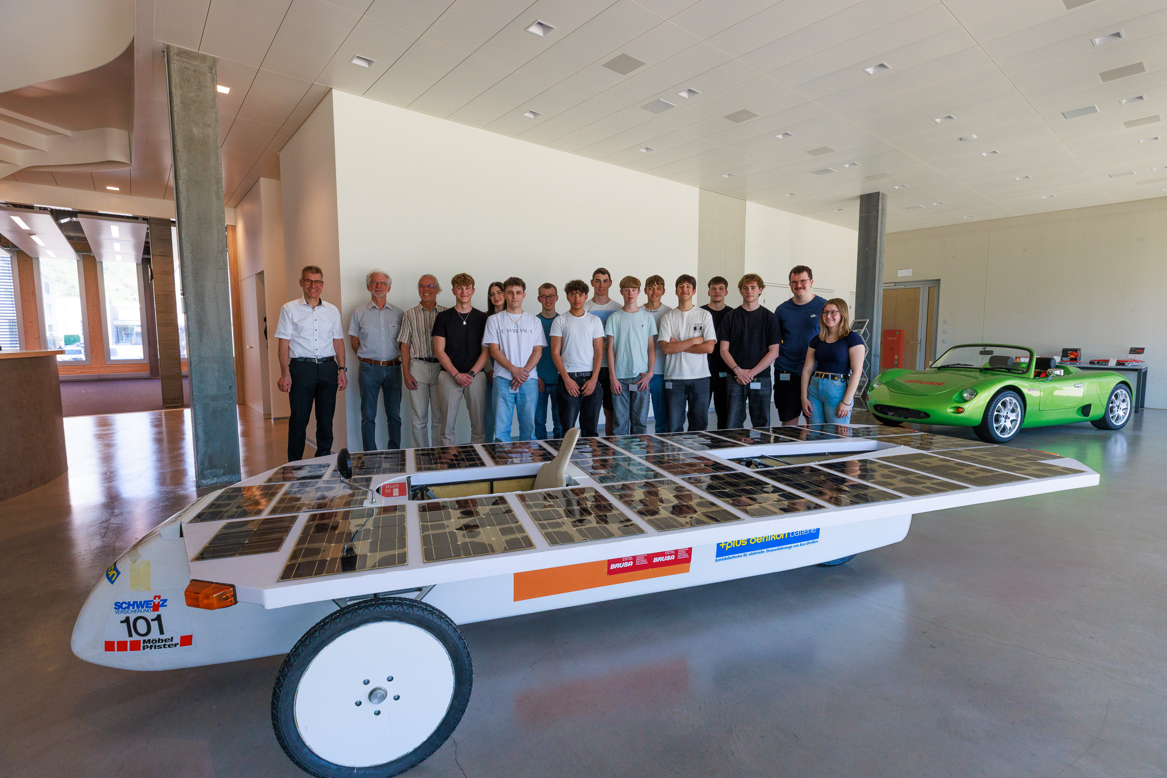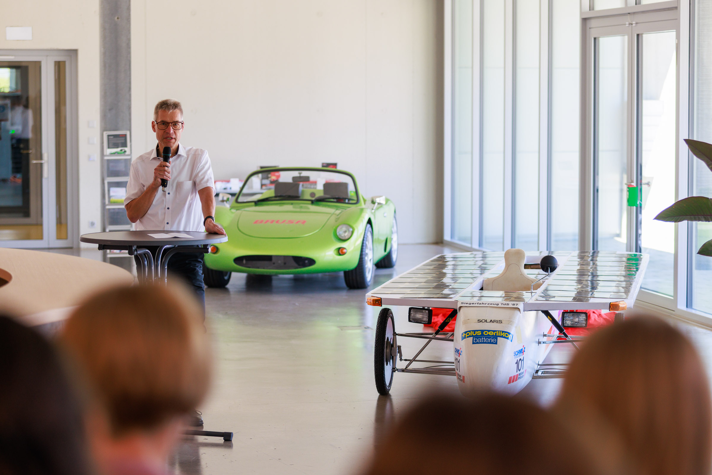 Im Rahmen der Jubiläumsfeier am Hauptsitz in Buchs sprachen Gründer Josef Brusa, Axel Krause, Holger Fink und Renato Steiger. Ausgestellt waren ein BRUSA Spider sowie ein restauriertes Solarfahrzeug von Axel Krause aus der Tour de Sol.
