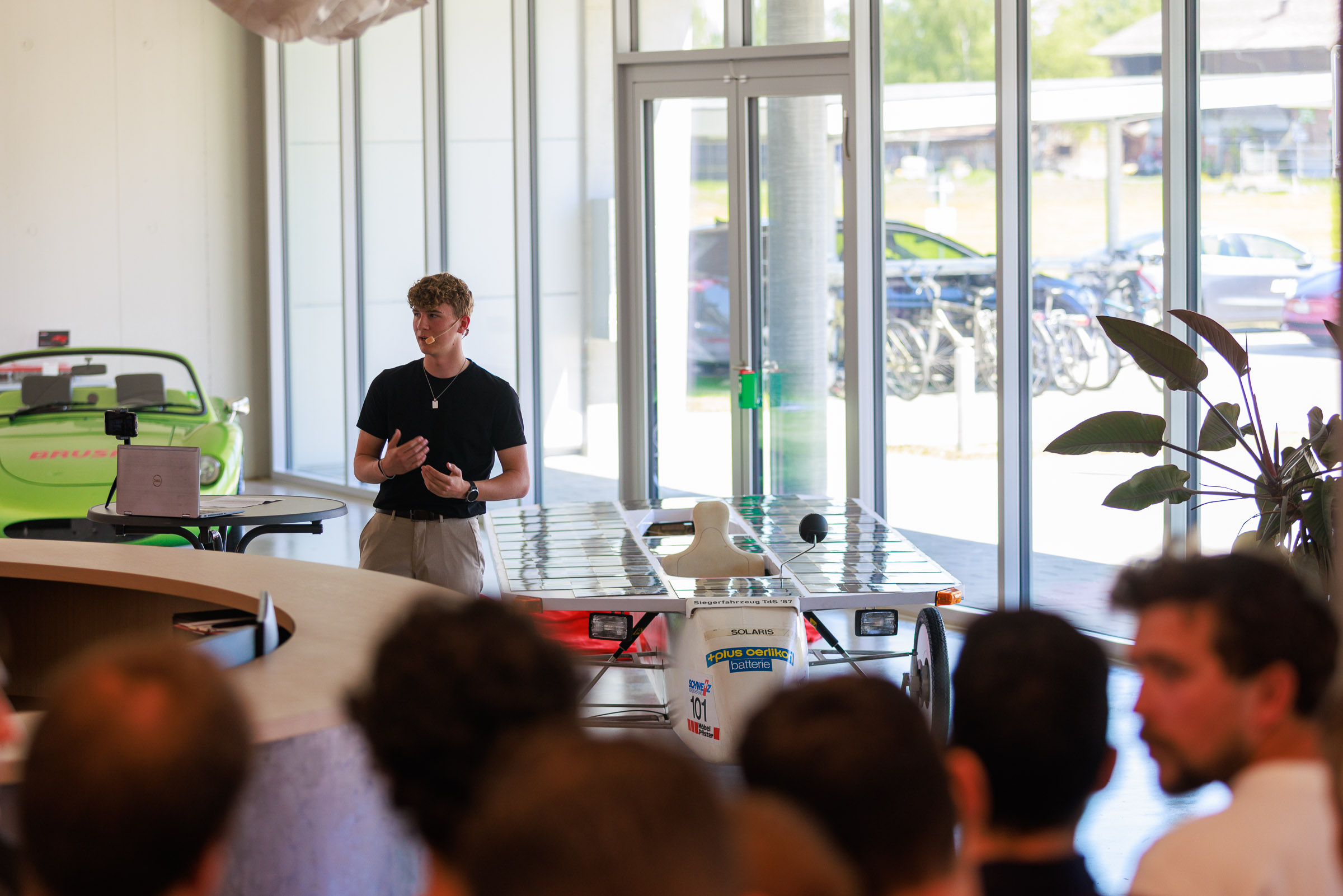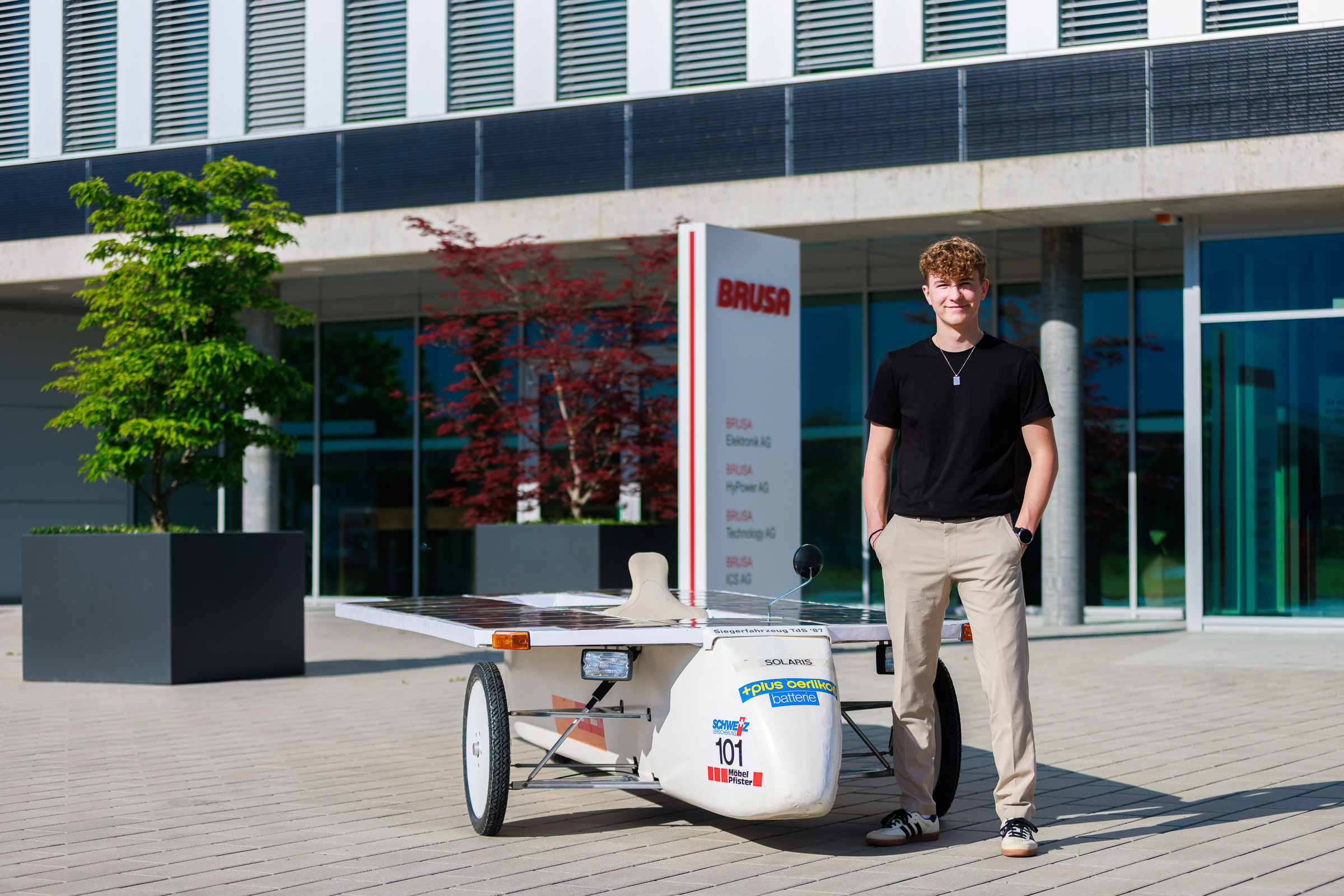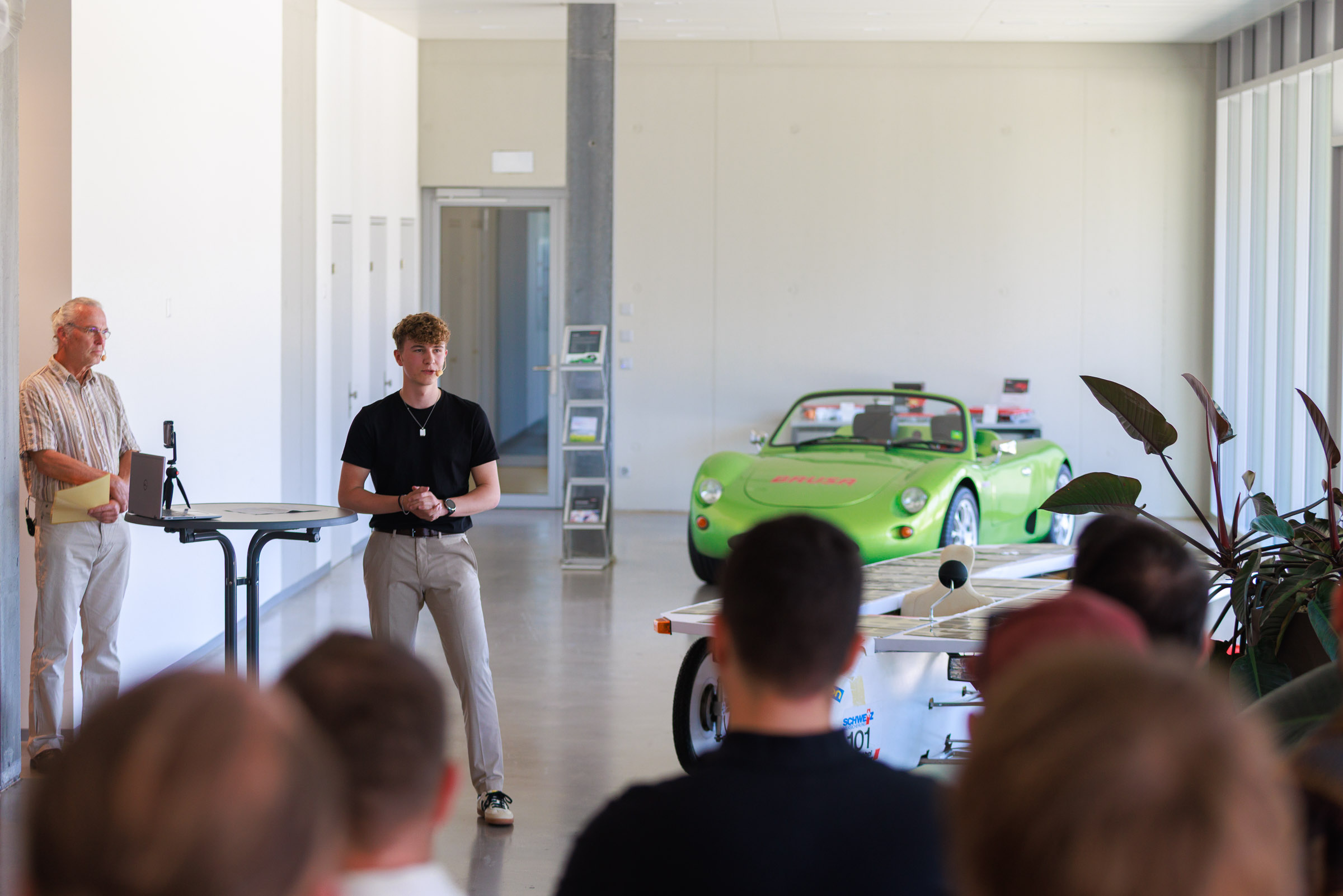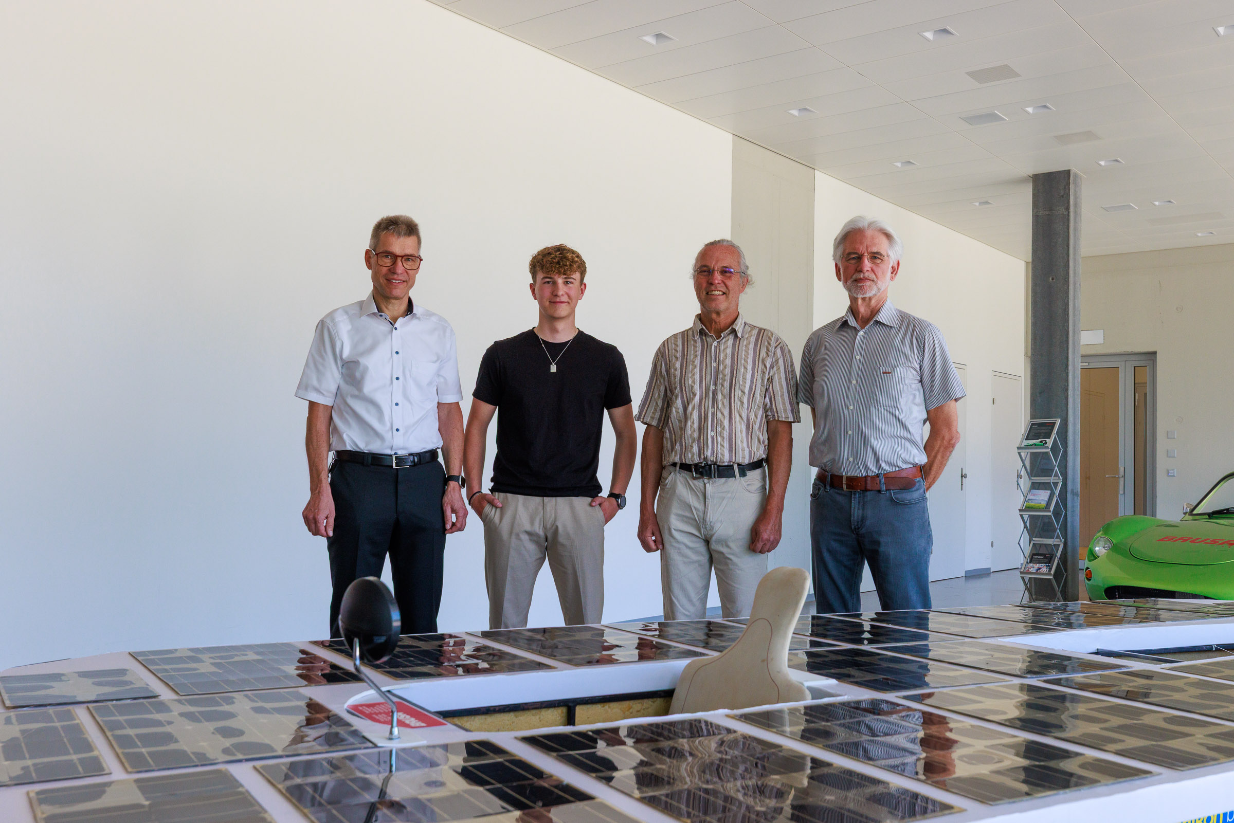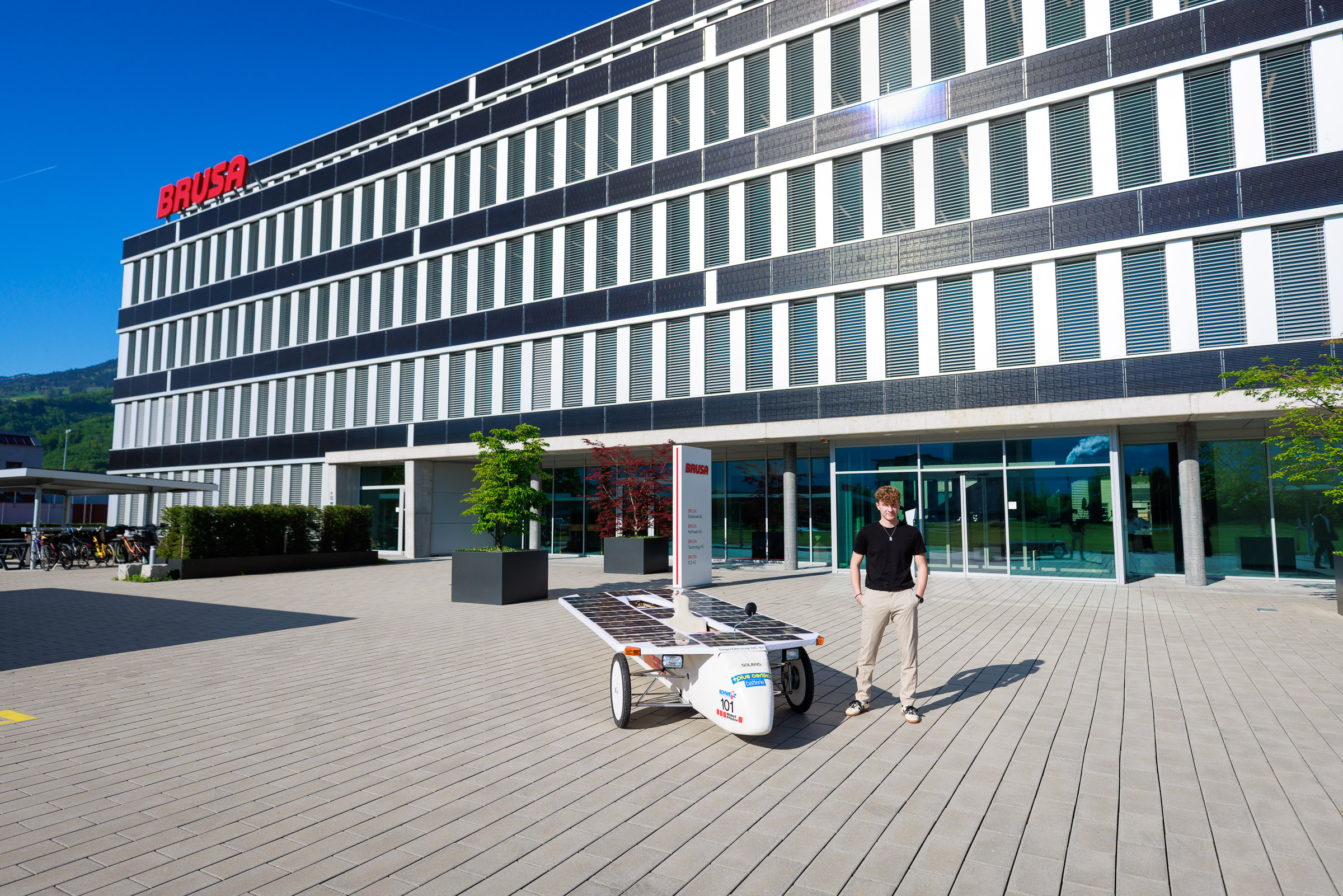 Im Rahmen der Jubiläumsfeier am Hauptsitz in Buchs sprachen Gründer Josef Brusa, Axel Krause, Holger Fink und Renato Steiger. Ausgestellt waren ein BRUSA Spider sowie ein restauriertes Solarfahrzeug von Axel Krause aus der Tour de Sol.