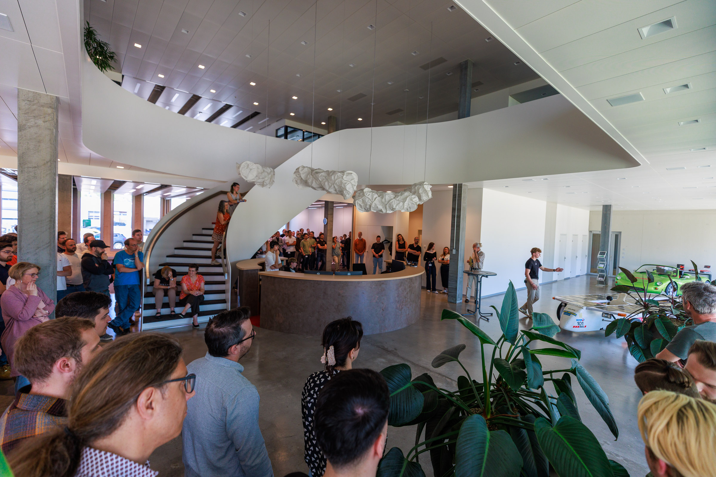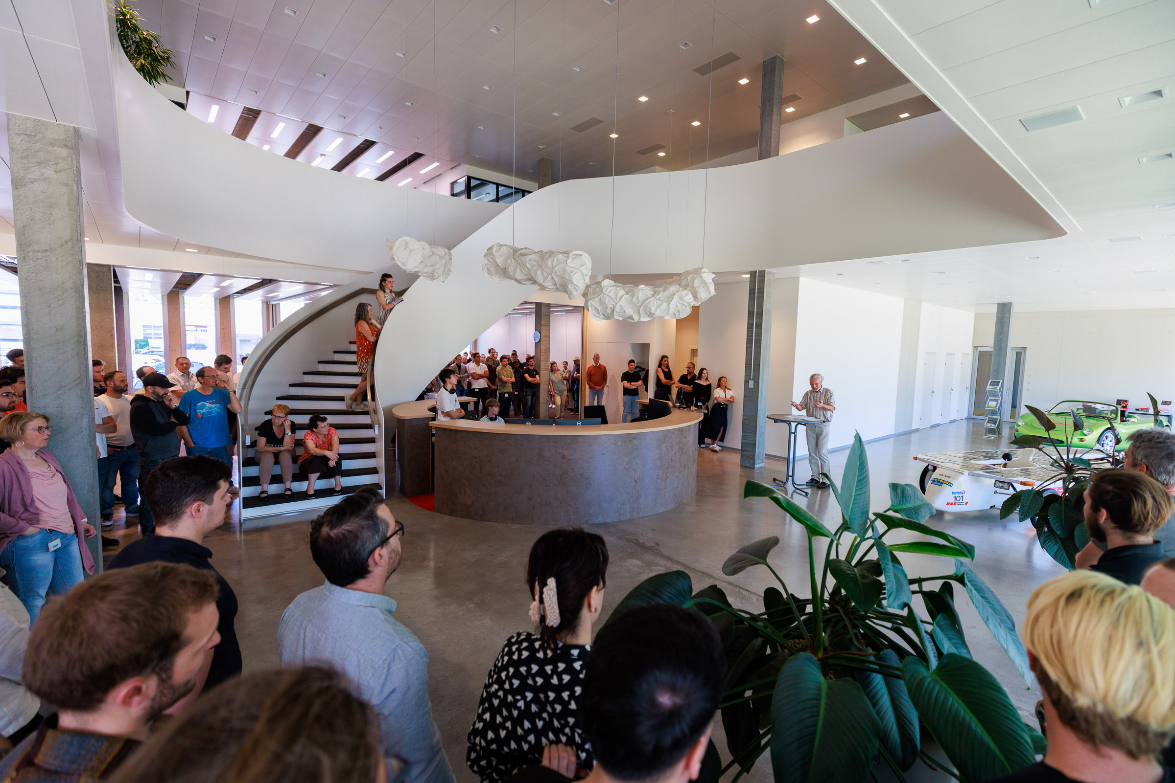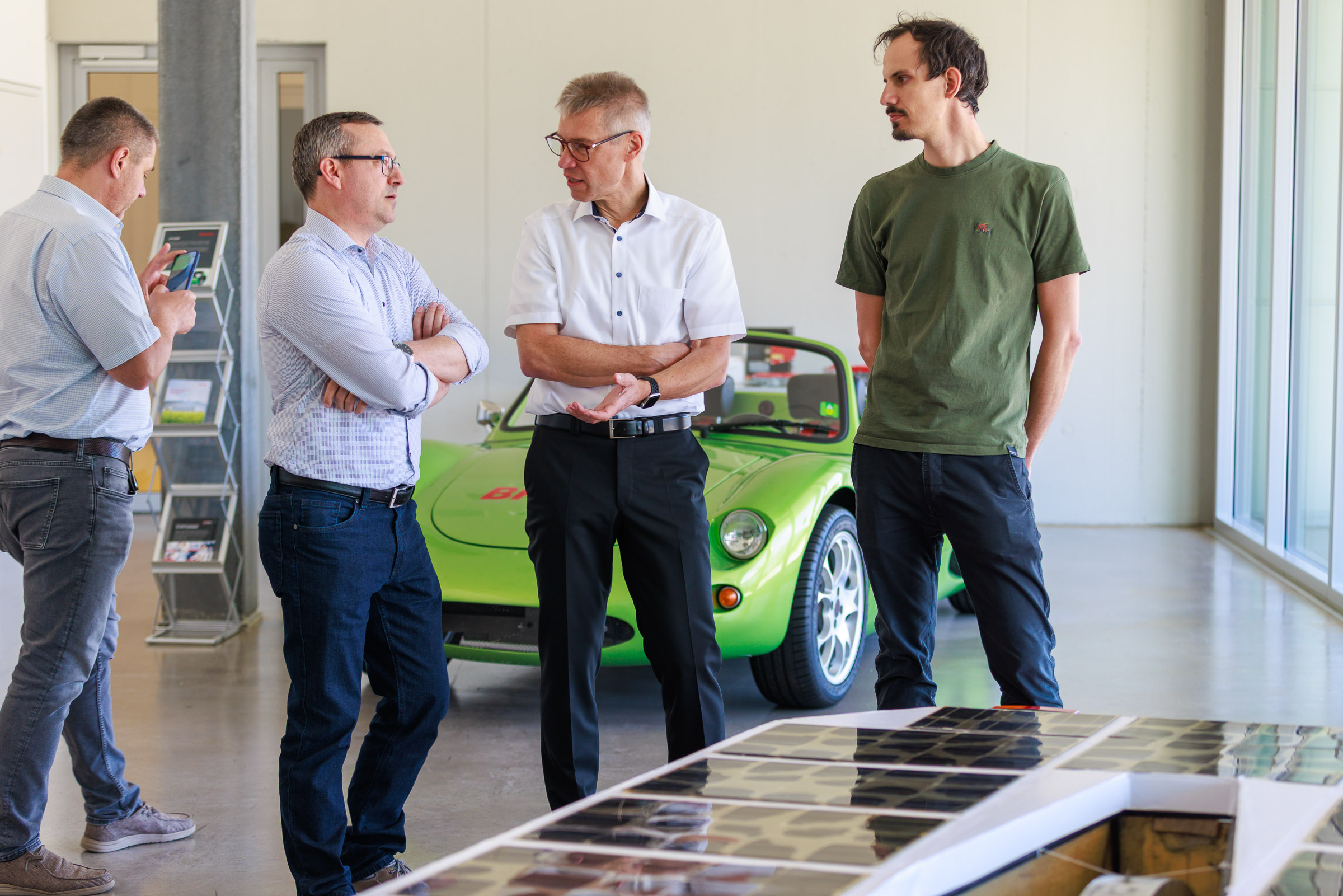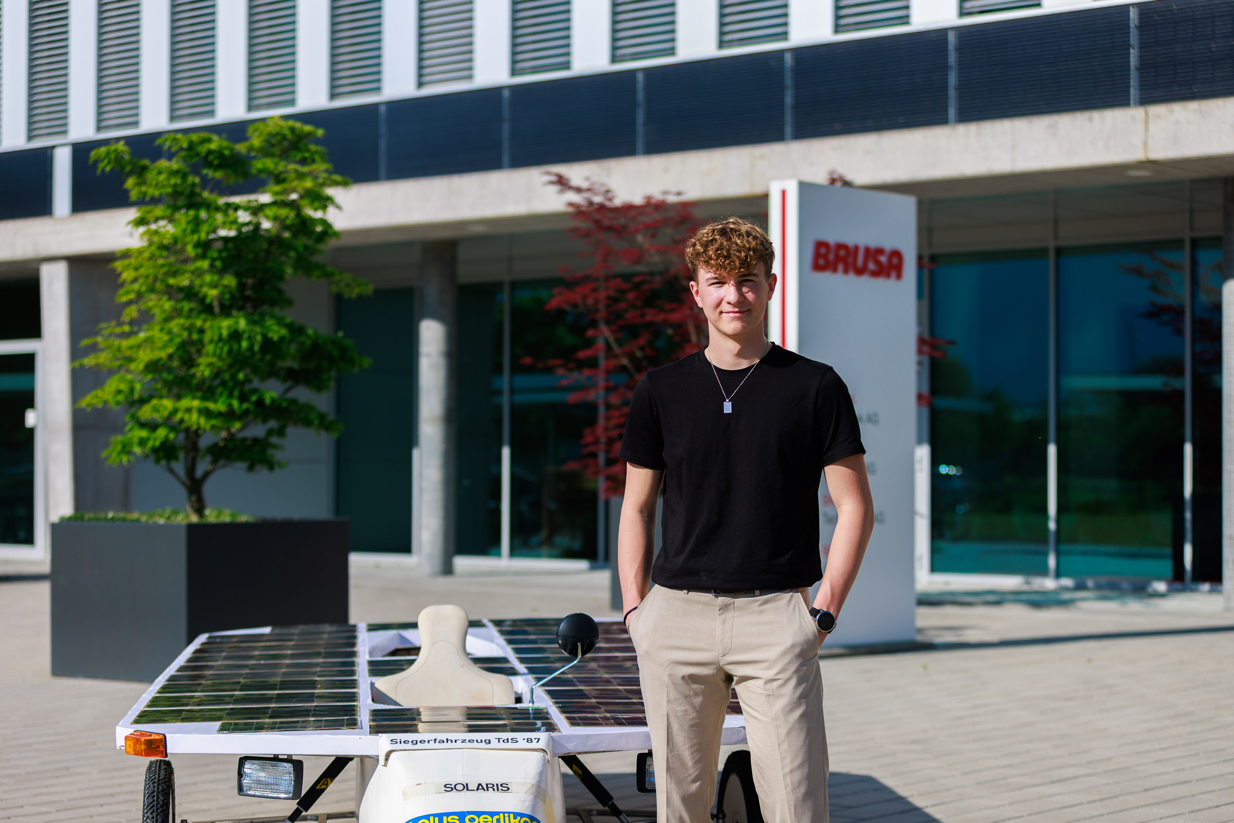 Im Rahmen der Jubiläumsfeier am Hauptsitz in Buchs sprachen Gründer Josef Brusa, Axel Krause, Holger Fink und Renato Steiger. Ausgestellt waren ein BRUSA Spider sowie ein restauriertes Solarfahrzeug von Axel Krause aus der Tour de Sol.
