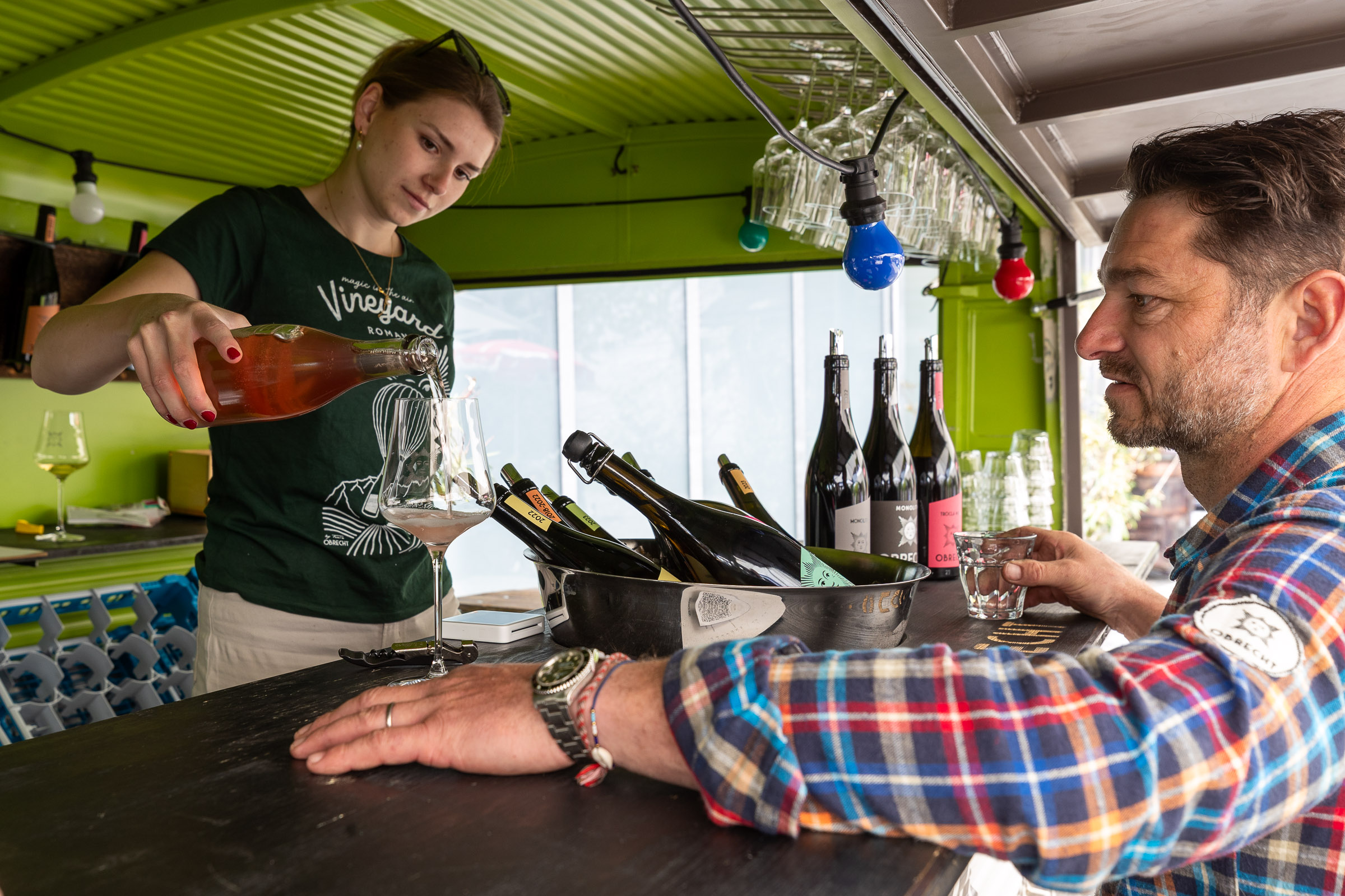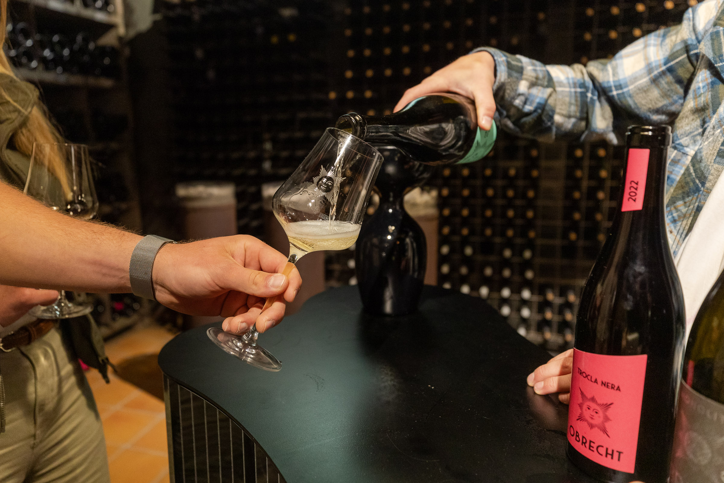 Die Aufnahmen zeigen Detail-Fotos aus dem Weinkeller, Wein- und Essensfotos sowie Personenfotos aus dem Hof. Weingut Obrecht liegt in der Bündner Herrschaft und steht für biodynamischen Weinbau in der Schweiz.