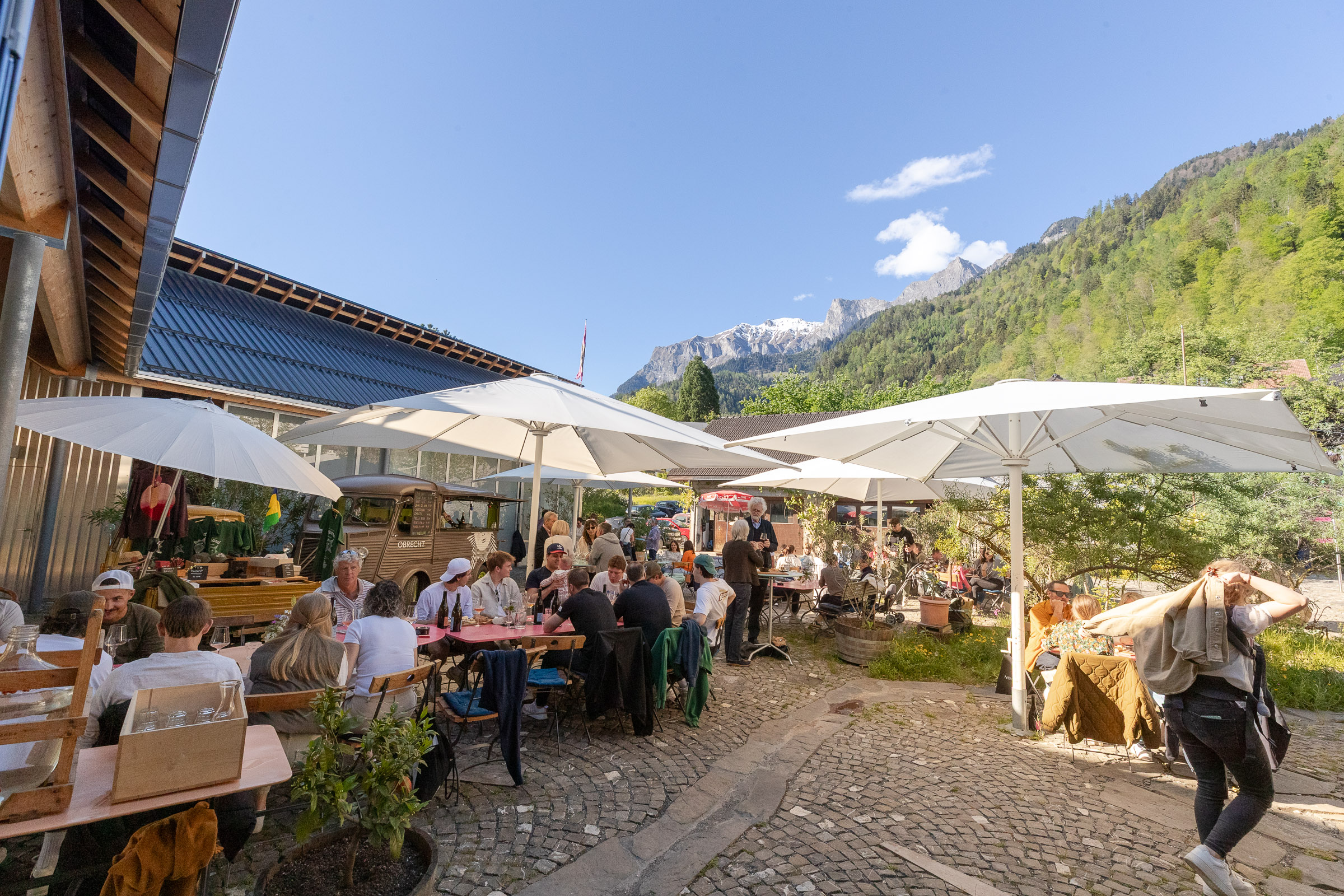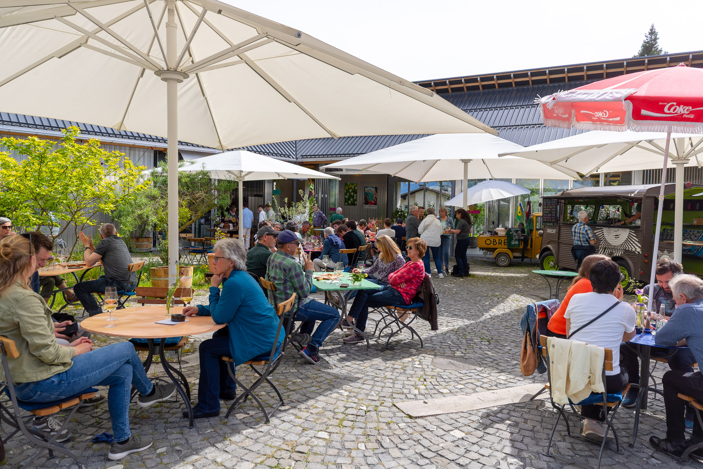 Am 4. Mai 2024 öffnete Weingut Obrecht in Jenins seinen Innenhof für das Hof Bistro. Ein Nachmittag mit Essen und Wein im Freien. Parallel dazu fanden Führung durch den Weinkeller mit Degustation statt.